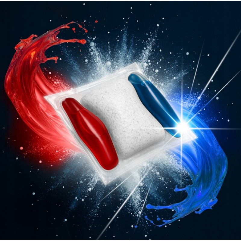 ✔️ **BEZPIECZNA SAMOROZPUSZCZALNA TECHNOLOGIA** - Innowacyjna osłonka eliminuje kontakt z detergentem i automatycznie uwalnia składniki aktywne w odpowiednim momencie cyklu, gwarantując optymalne dozowanie.