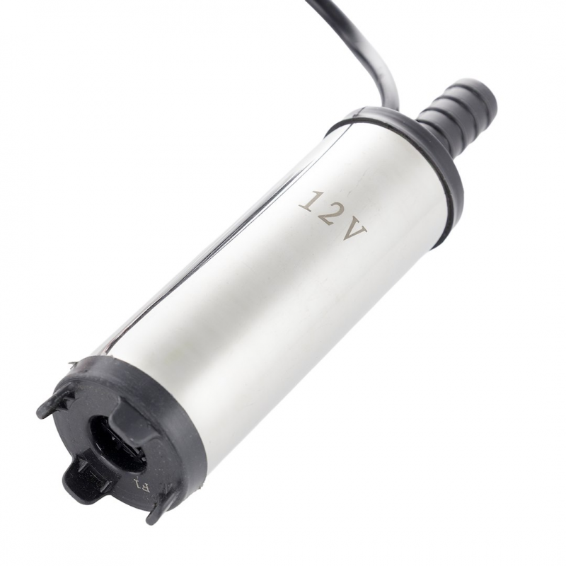 Pompa zanurzeniowa 12V o średnicyØ38 mmprzeznaczona do pompowania oleju napędowego, oleju opałowego i innych cieczy o podobnej gęstości. Dzięki zmniejszonej średnicy jest bardzo poręczna i wygodna w użyciu przy pompowaniu cieczy w samochodach, ciągnikach, maszynach budowlanych, kombajnach, łodziach, itp. Specjalny filtr wykonany z metalowej siatki na wlocie pompy (u dołu) zapobiega zasysaniu elementów, które mogą spowodować uszkodzenia urządzenia i zabrudzenia cieczy. Przepustowość wynosi ok. 15L/min przy zasilaniu prądem stałym 12V.