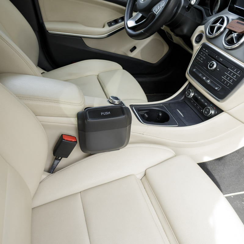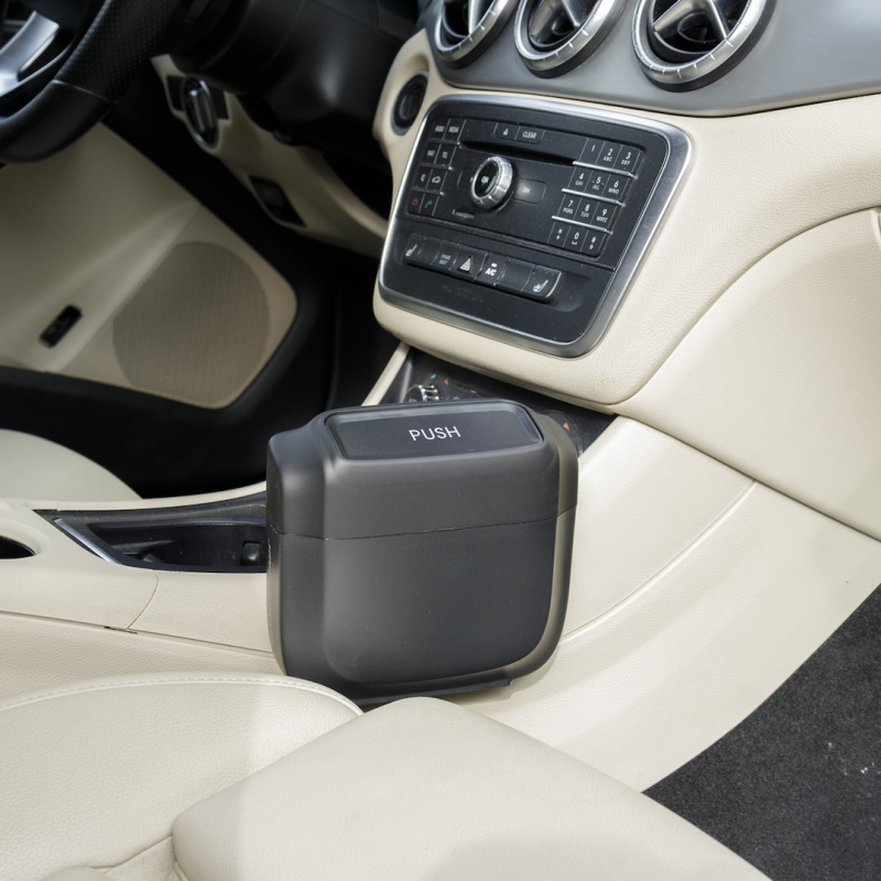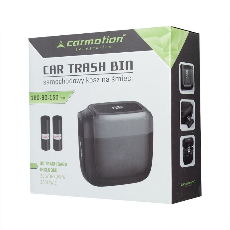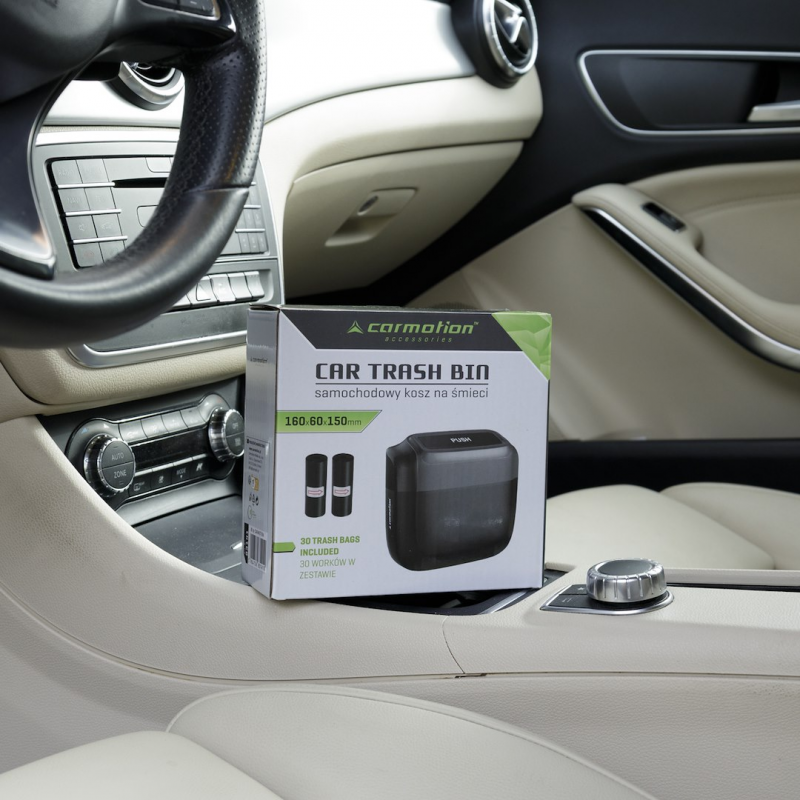 Kompaktowy samochodowy kosz na śmieci o pojemności 1l z workami, ułatwia utrzymanie czystości w pojeździe. Otwierany jednym kliknięciem, łatwy montaż za pomocą klipsa na drzwiach bocznych lub fotelu. Szczelne zamknięcie zapobiega wydostawaniu się nieprzyjemnych zapachów, co znacząco podnosi komfort podróżowania.