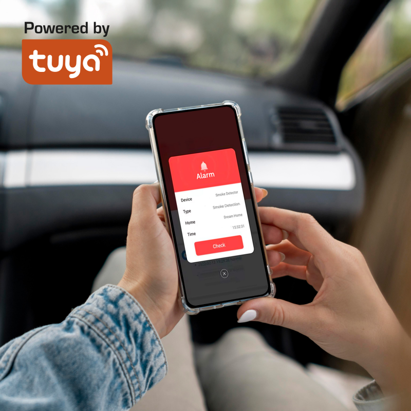 Czujnik współpracuje z aplikacją Tuya Smart, dzięki czemu masz wszystko pod kontrolą z poziomu telefonu. Otrzymasz powiadomienie o alarmie, niskim poziomie baterii i sprawdzisz historię zdarzeń. To idealne rozwiązanie dla osób, które chcą mieć spokojną głowę – w domu i poza nim.