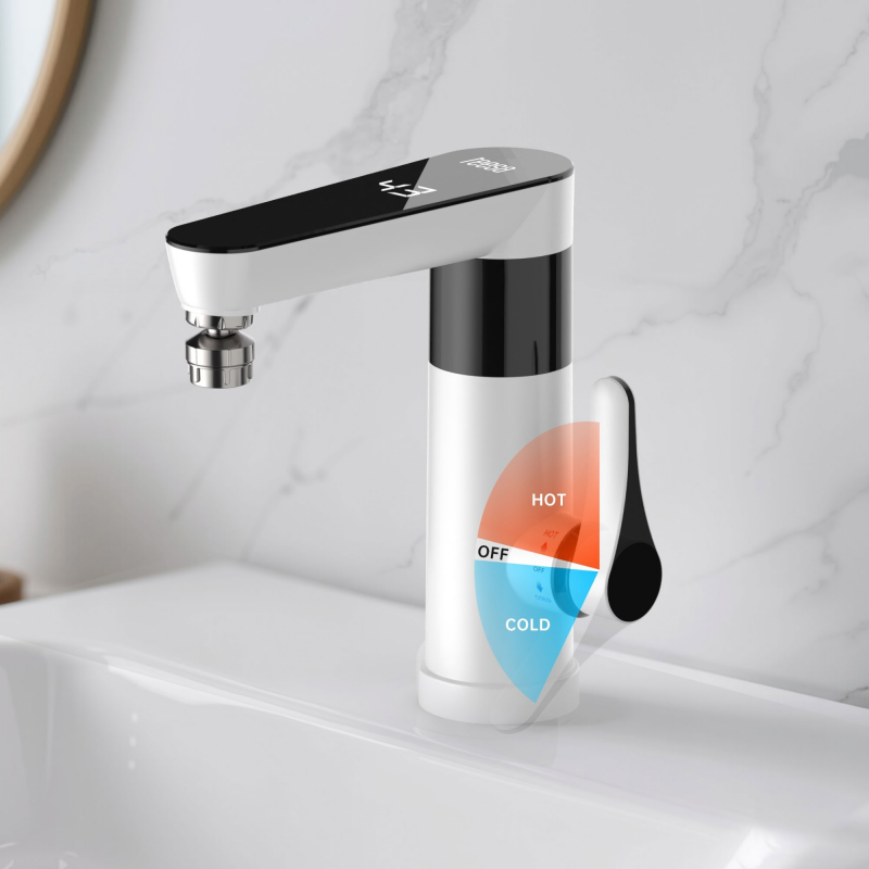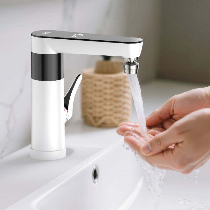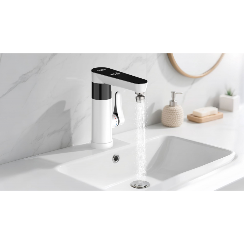 Instalacja urządzenia jest szybka i nie wymaga przerabiania instalacji wodnej. Podgrzewacz można zamontować bezpośrednio na blacie lub zlewie, podłączając standardowe przyłącze G 1/2” i zasilanie 220–240 V. Dzięki temu możesz zyskać stały dostęp do gorącej wody nawet w miejscach bez klasycznego bojlera.
