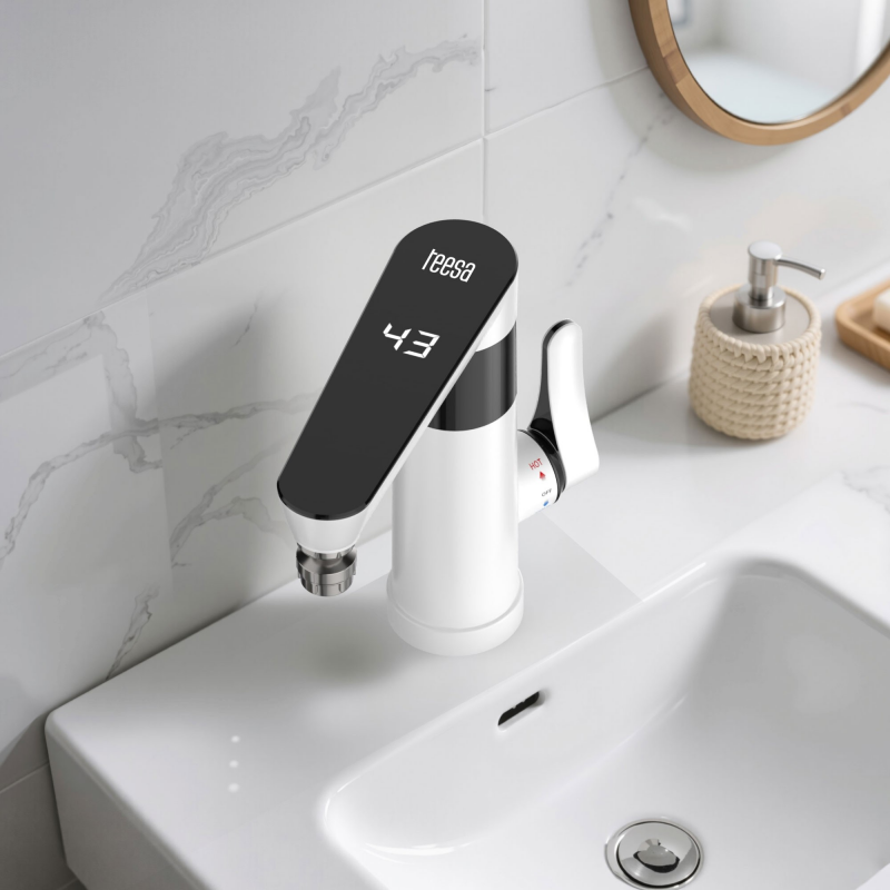 Kompaktowy podgrzewacz wody Teesa montowany bezpośrednio przy zlewie to idealne rozwiązanie tam, gdzie liczy się szybki dostęp do ciepłej wody bez skomplikowanych instalacji. Minimalistyczny design i niewielkie wymiary sprawiają, że urządzenie świetnie pasuje zarówno do małych kuchni, jak i domków letniskowych czy warsztatów. Natychmiastowe grzanie wody zapewnia wygodę każdego dnia.