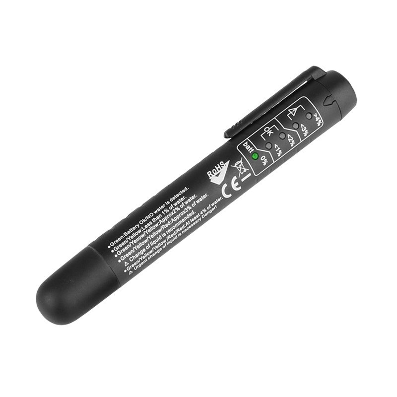 Tester płynu dokonuje pomiaru stężenia procentowego wody w płynie hamulcowym. Płyn hamulcowy nie powinien zawierać więcej niż 1,5% wody.