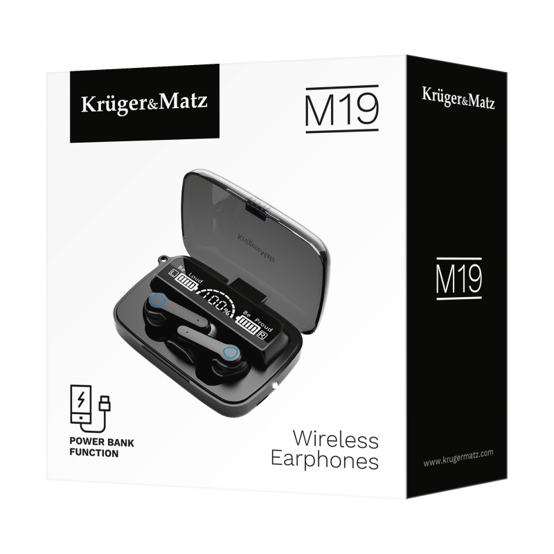 Douszne słuchawki Kruger&Matz M19 zostały wyposażone w baterie o pojemności 30 mAh, które zapewnią nawet 3-godziny w towarzystwie Twoich ulubionych dźwięków.