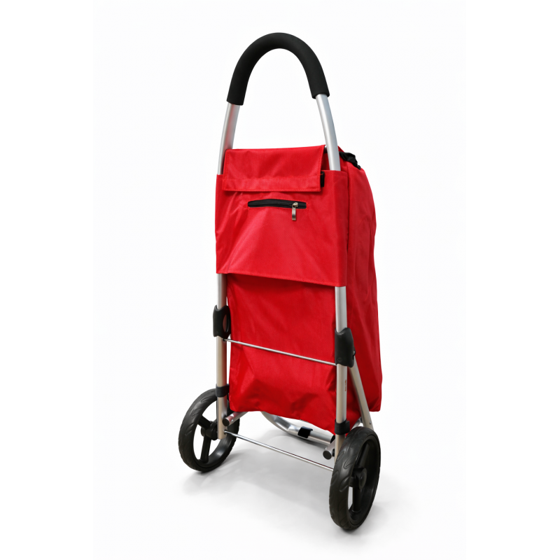 Wózek posiada jedną dużą komorę ładunkową, kieszeń przednią oraz małą kieszeń np na klucze, dokumenty itp, która zapinana jest na suwak.